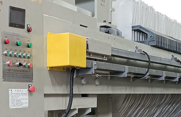 高壓壓濾機是集機、電、液于一體的固液分離機械設備,它主要由五大部分組成:機架部分、自動拉板部分、過濾部分、液壓部分和電器控制部分。可根據需求增加接液盤、翻板、儲泥斗、水洗系統、濾布曲張架、氣卸料等。其結構較簡單,操作容易,運行穩定,保養方便;過濾面積選擇范圍靈活,占地少;對物料適應性強, 效率高,含水率低,適用于各行各業物料脫水處理。現已應用于市政、礦山、紙業等多個大型固廢脫水處理行業。設備使用簡單,操作、維護方便,是理想的固液分離設備。專利技術(專利類型:發明,專利號:CN104260402A),圓形濾板,濾板面結構自主知識產權設計,使用壽命長,密封性強,不噴漿,耐高壓,過濾效果好,濾餅含固高。