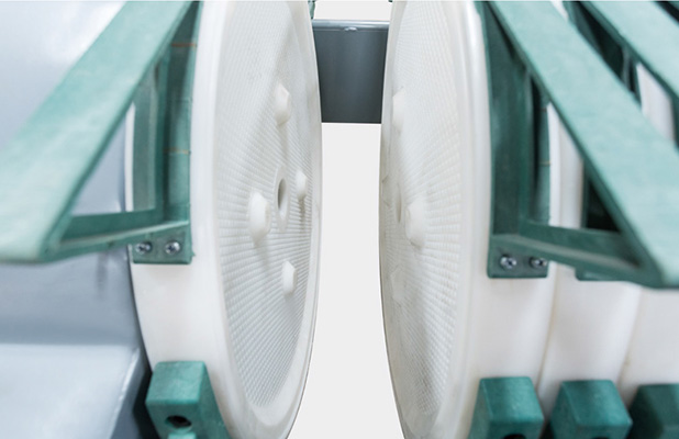 ③濾板采用進口高分子PE專利技術(shù)高壓壓制成型,確保每塊濾板使用壽命更長;