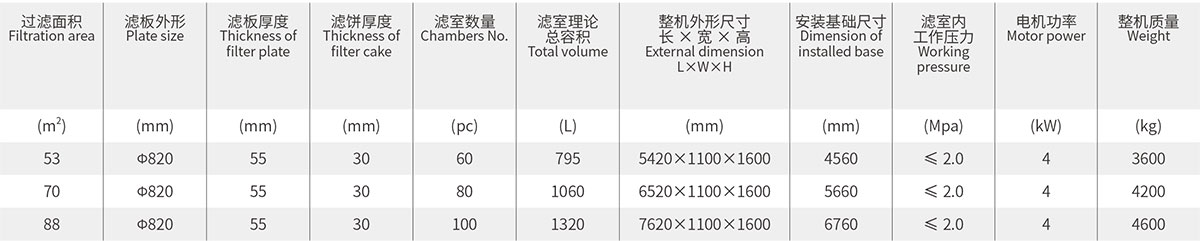 D720、D820、D1100型壓濾機,過濾壓力高(2.0——3.0mpa), 效率高,含水率低,適用于各行各業(yè)物料脫水處理?,F(xiàn)已應用于市政、礦山、紙業(yè)等多個大型固廢脫水處理行業(yè)。設備使用簡單,操作、維護方便,是理想的固液分離設備。專利技術(shù)(專利類型:發(fā)明、專利號:CN207980547U),圓形濾板,濾板面結(jié)構(gòu)自主知識產(chǎn)權(quán)設計,使用壽命長,密封性強,不噴漿,耐高壓,過濾效果好,濾餅含固高。