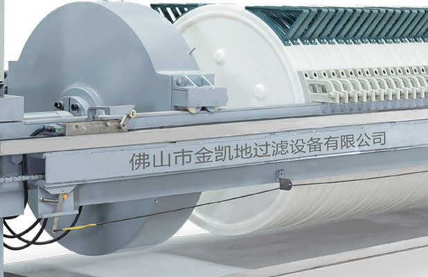 在污泥泵進泥壓力達到設定壓力值后,污泥泵自動停機,進泥閥自動關閉,壓榨機的液壓系統自動啟動,對進入濾腔的污泥進行二次壓榨,壓力高達65——110kg/cm2,濾室自動調節壓縮,使濾餅在高壓力壓榨下將濾餅中的大部水擠出