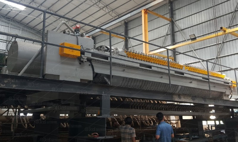 在濾板卸料過程中,部分濾餅經常落入拉板小車導軌,影響拉板機構和傳動鏈條的潤滑。自動隔膜壓濾機每運轉 3-6個月,將兩側的鏈條蓋板打開,清理里面的污垢、油脂;同時,將鏈條拆下清洗、更換油脂。